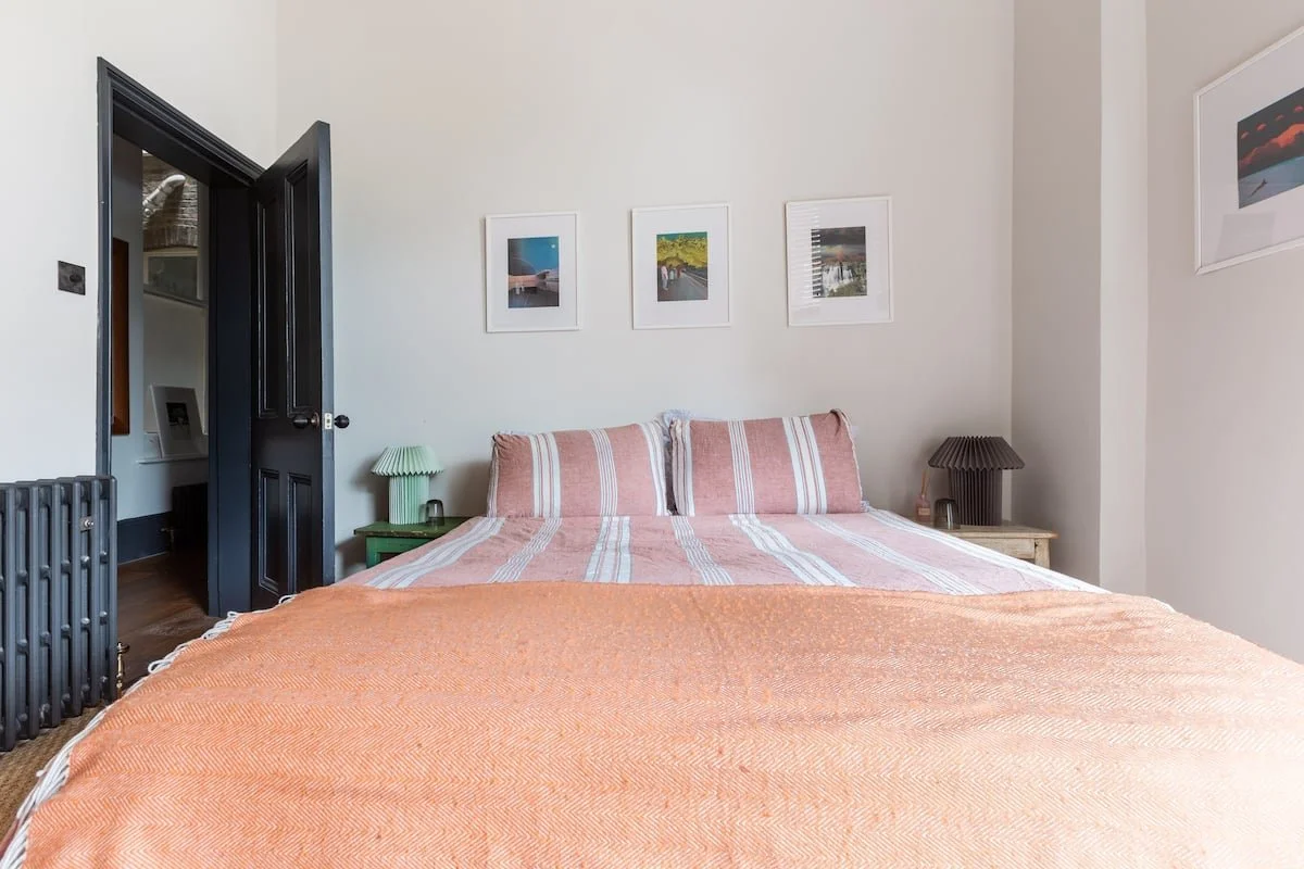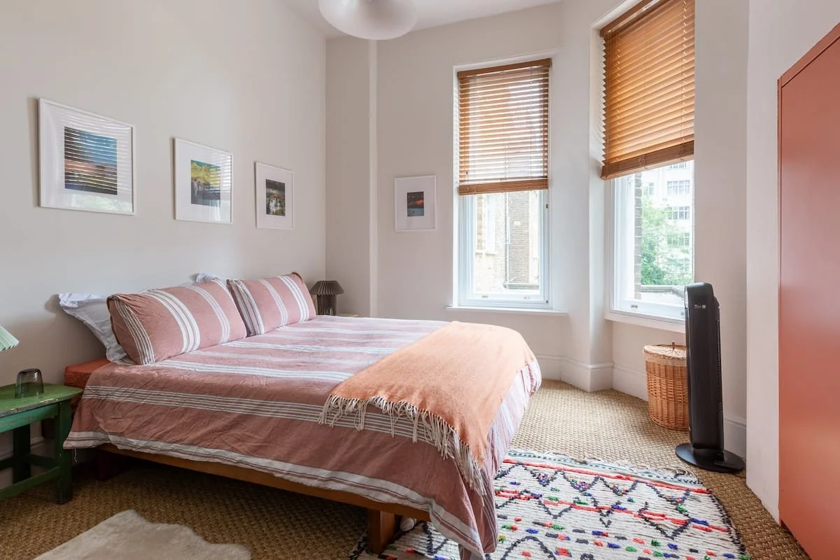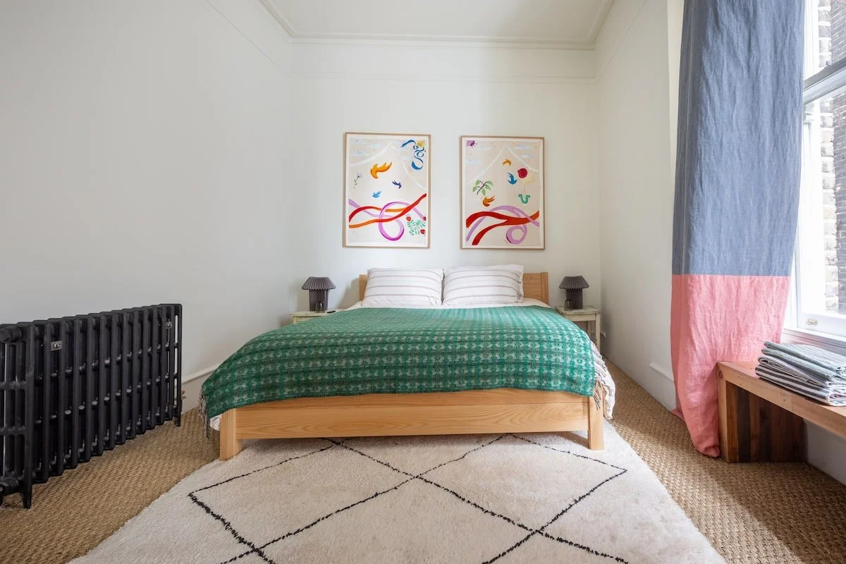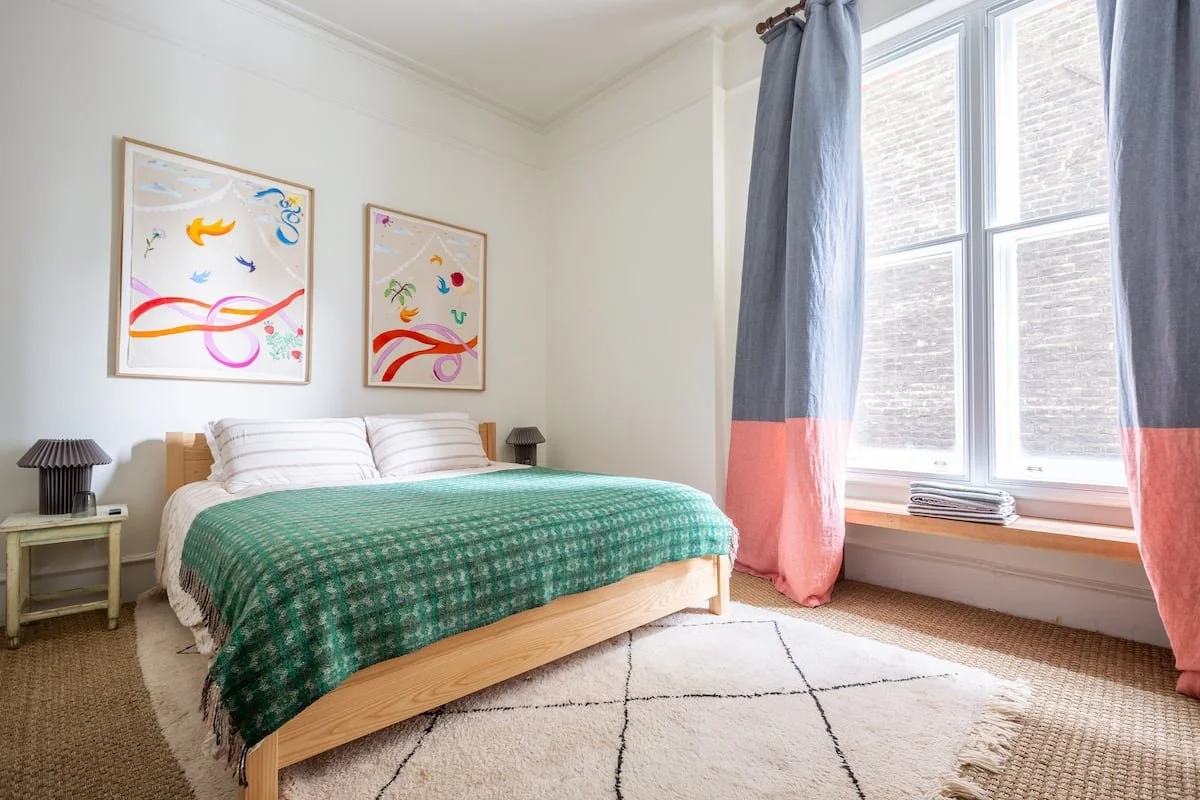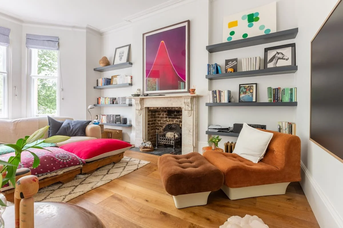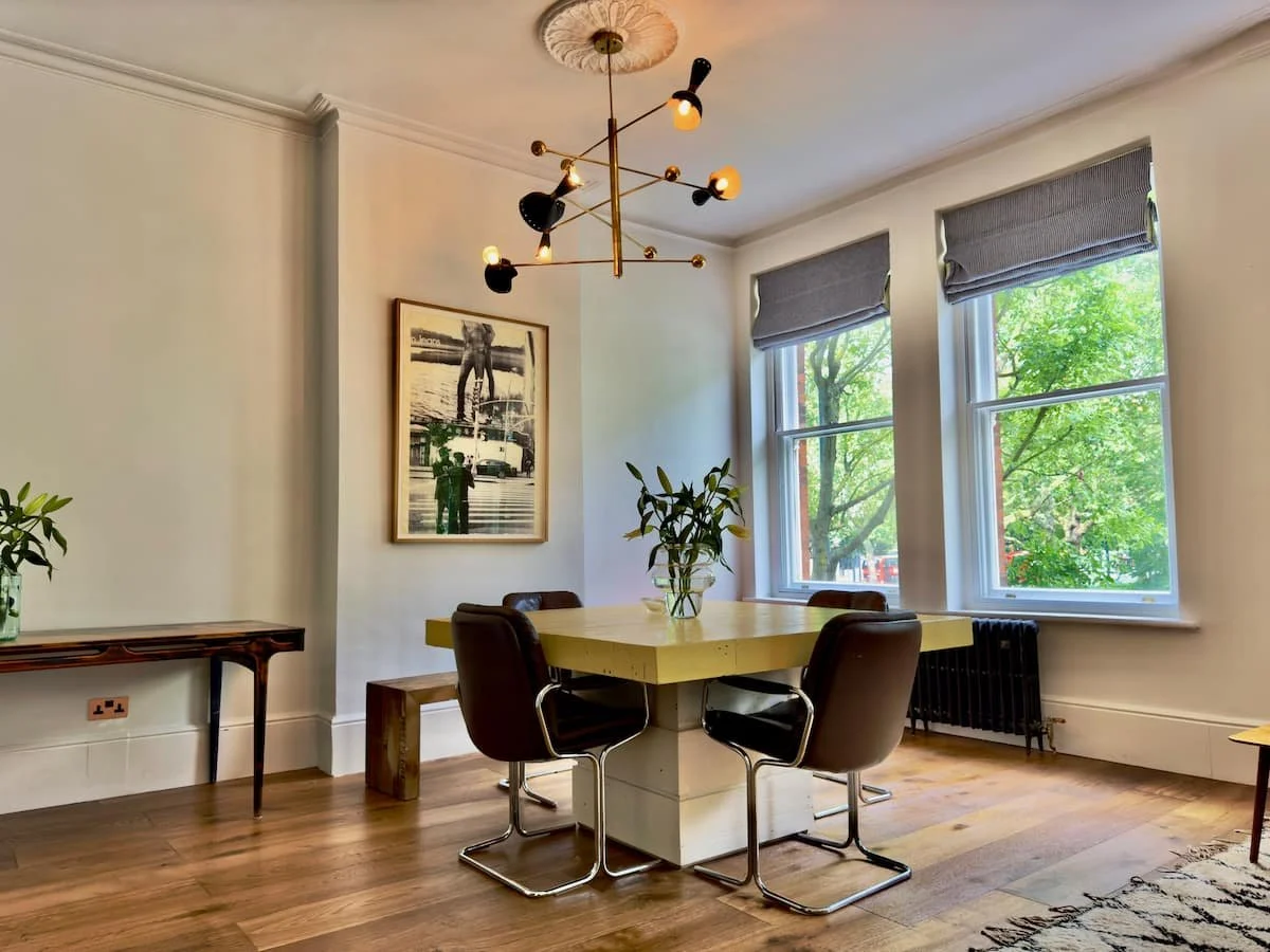 The Hideout is a New York-style apartment in the belly of London. A hybrid of Victorian, mid-century and bohemian detail all under 13 ft high ceilings and a great green view out of the 6-window living room.