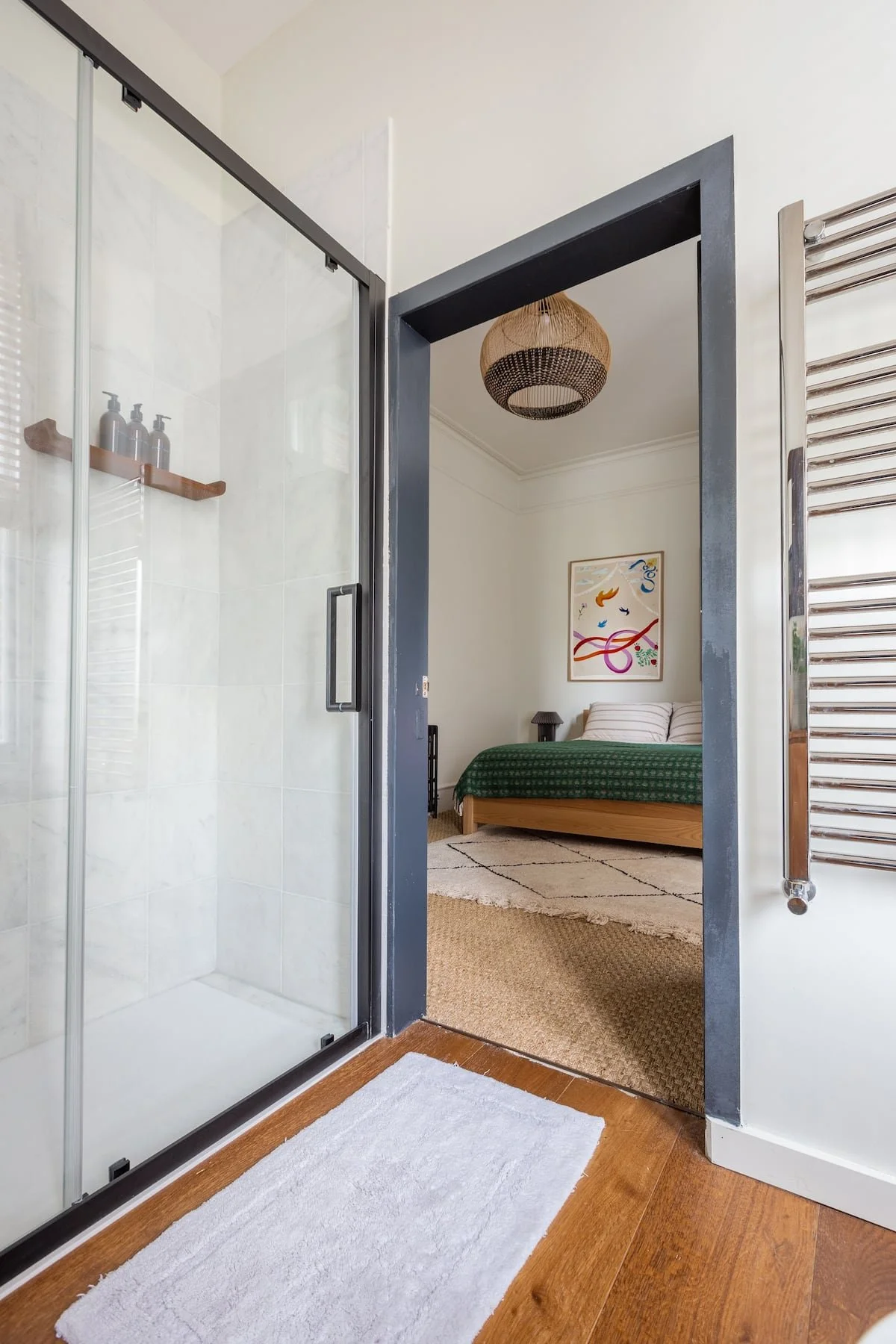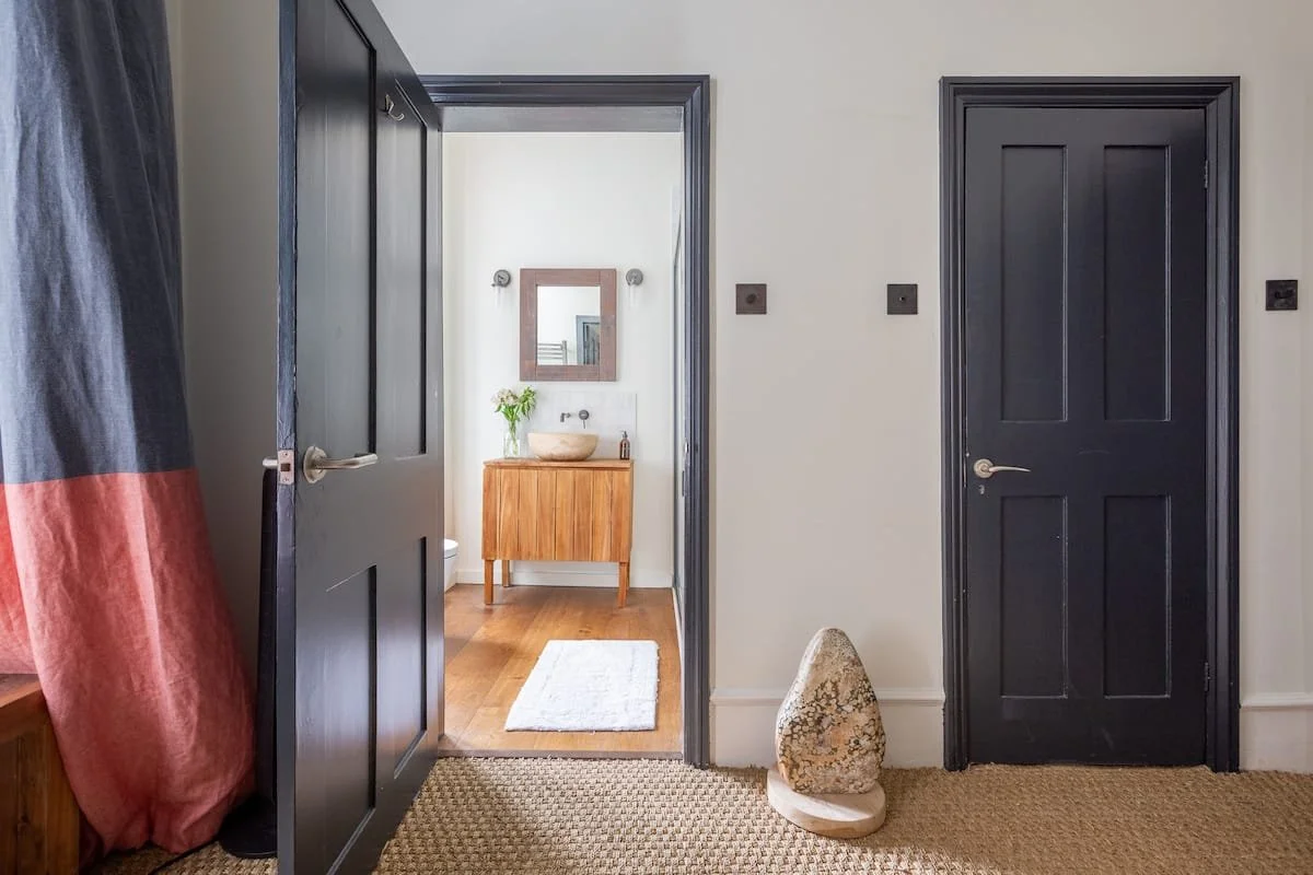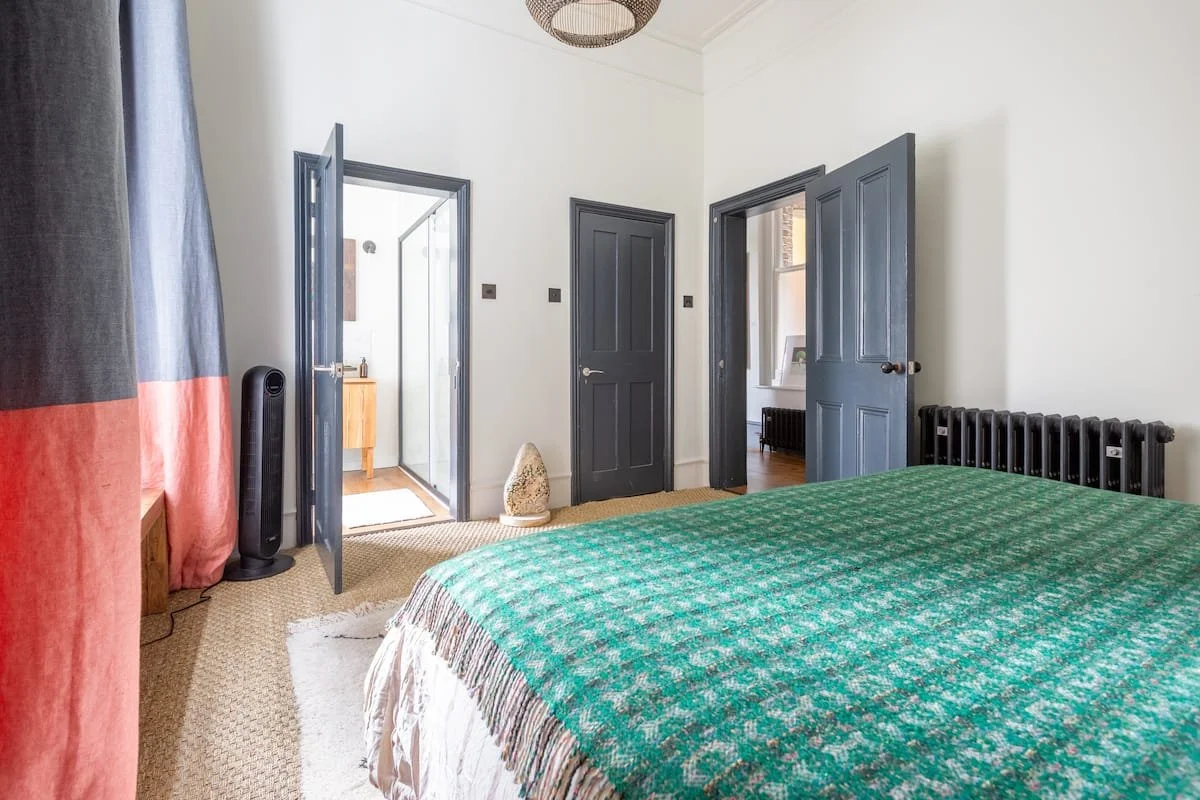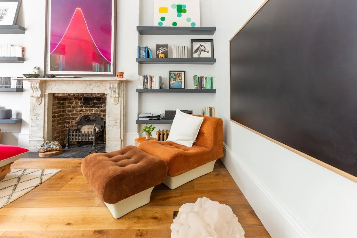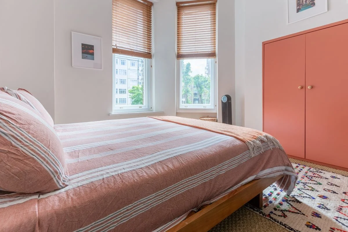 The Hideout is a New York-style apartment in the belly of London. A hybrid of Victorian, mid-century and bohemian detail all under 13 ft high ceilings and a great green view out of the 6-window living room.